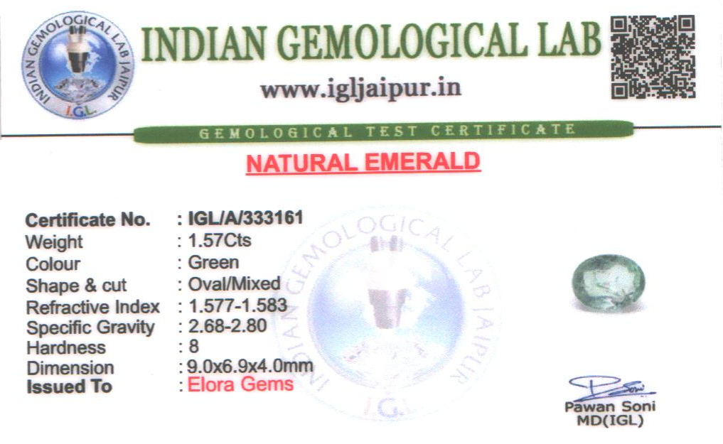 Natural Emerald (Maragadham) weighing 1.57 carats In Oval