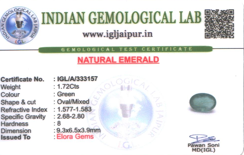 Emerald (Maragadham) 9x7 MM 1.72 carats