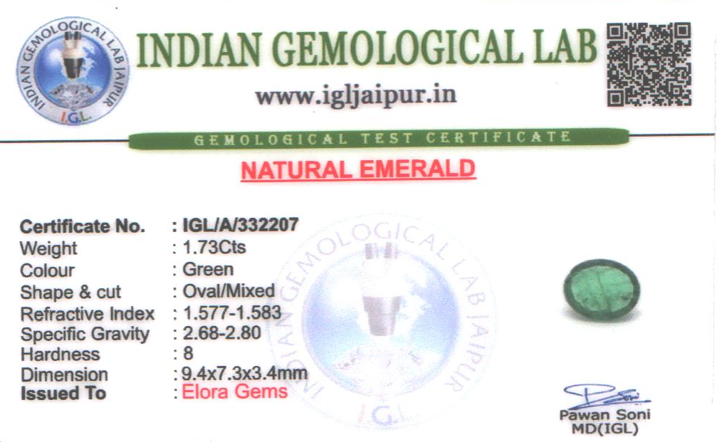 Emerald (Maragadham) 9x7 MM 1.73 carats