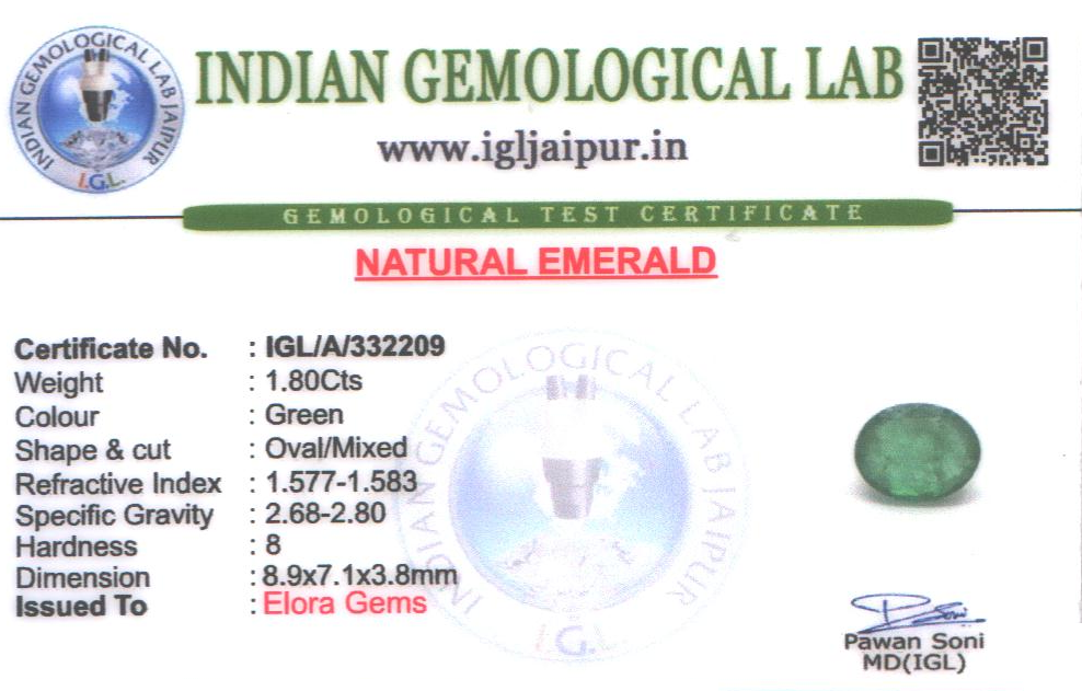 Emerald (Maragadham) 9x7 MM 1.8 carats