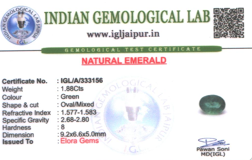 Emerald (Maragadham) 9x7 MM 1.88 carats