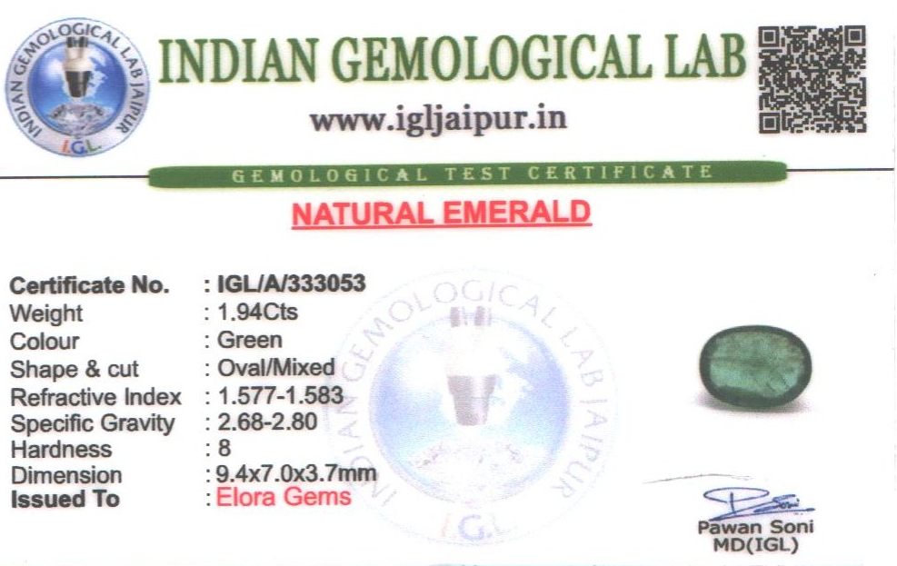 Emerald (Maragadham) 9x7 MM 1.94 carats