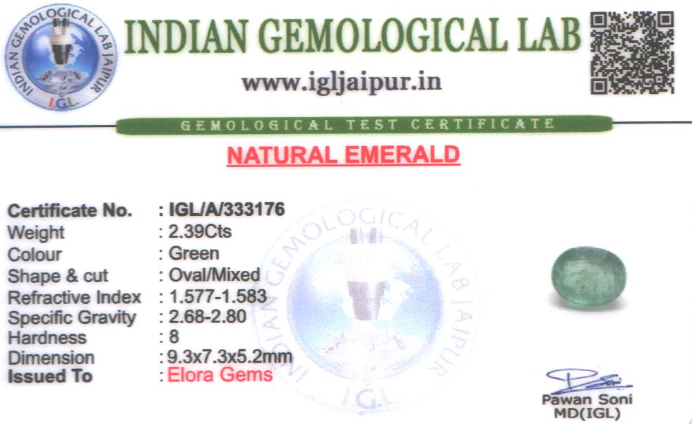 Natural Emerald (Maragadham) weighing 2.39 carats In Oval