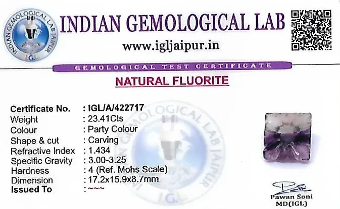 Natural Fluorite 17x16 MM weighing - 23.41 carats in Carving shape