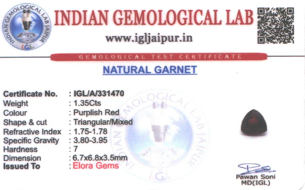 Natural Garnet weighing 1.35 carats In Triangular