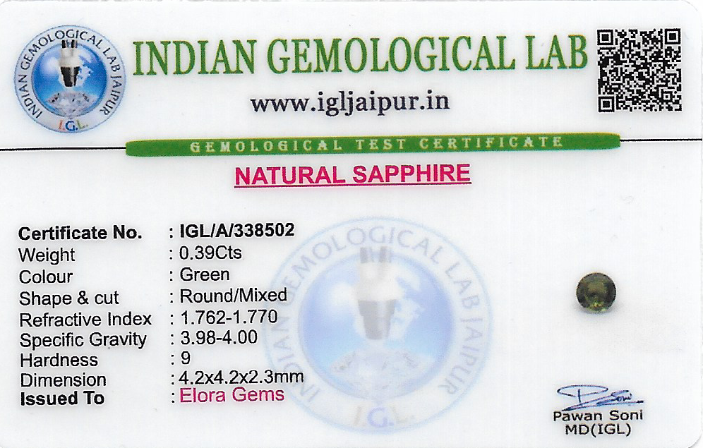 Natural Green Sapphire weighing 0.39 carats In Round from Sri Lanka (Ceylon)