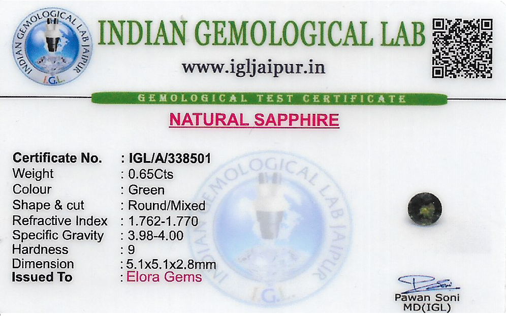 Natural Green Sapphire weighing 0.65 carats In Round from Sri Lanka (Ceylon)