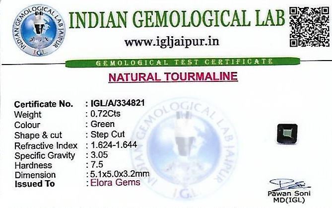 Natural Green Tourmaline (Verdelite) weighing 0.72 carats