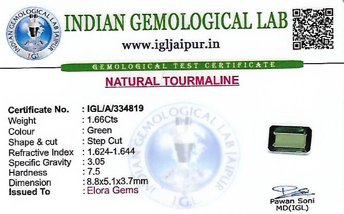 Natural Green Tourmaline (Verdelite) weighing 1.66 carats