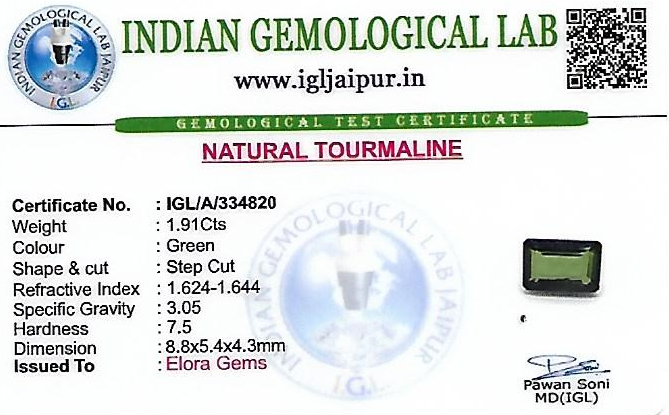 Natural Green Tourmaline (Verdelite) weighing 1.91 carats