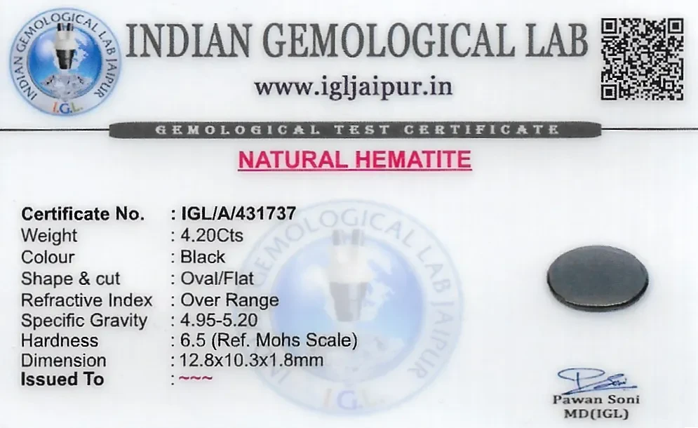 Natural Hematite 13x10 MM weighing - 4.20 carats in Oval shape
