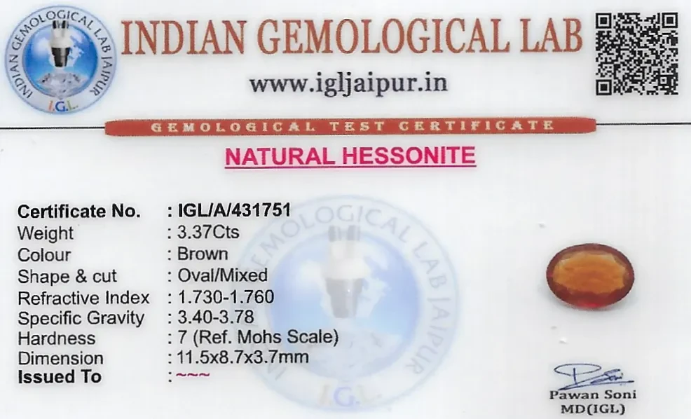 Hessonite (Gomed) 12x9 MM 3.37 carats