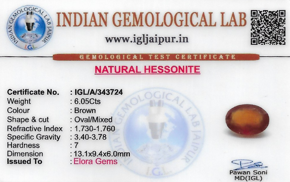 Hessonite (Gomed) 13x9 MM 6.05 carats