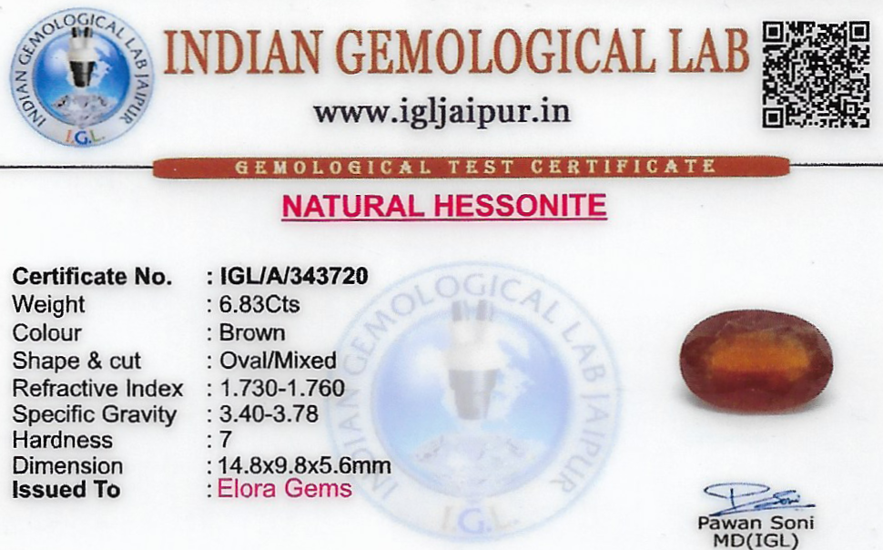 Natural Hessonite (Gomed) weighing 6.83 carats In Oval