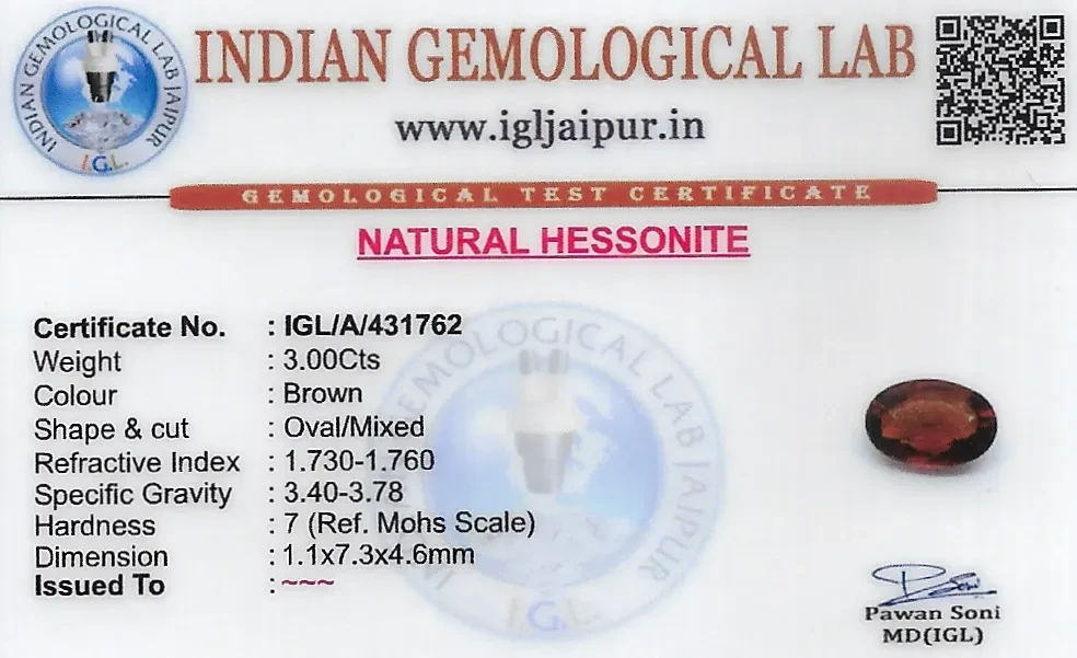 Natural Hessonite (Gomed) weighing 3 carats In Oval