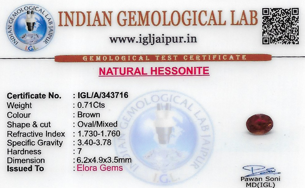 Natural Hessonite (Gomed) weighing 0.71 carats In Oval