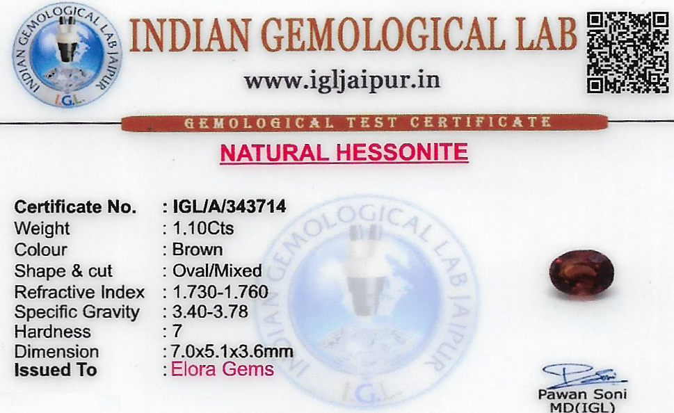 Natural Hessonite (Gomed) weighing 1.1 carats In Oval