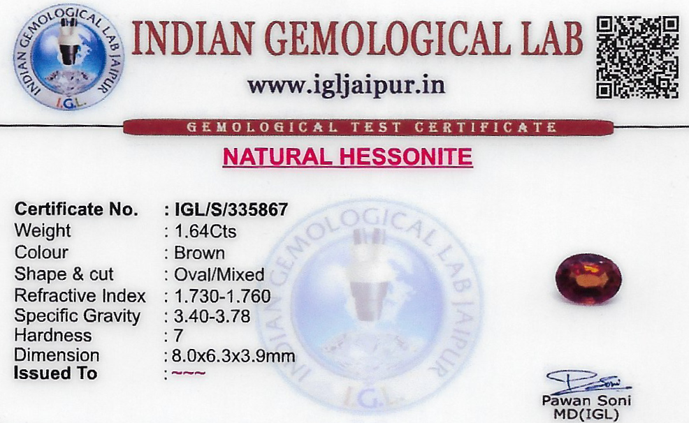 Natural Hessonite (Gomed) weighing 1.64 carats In Oval