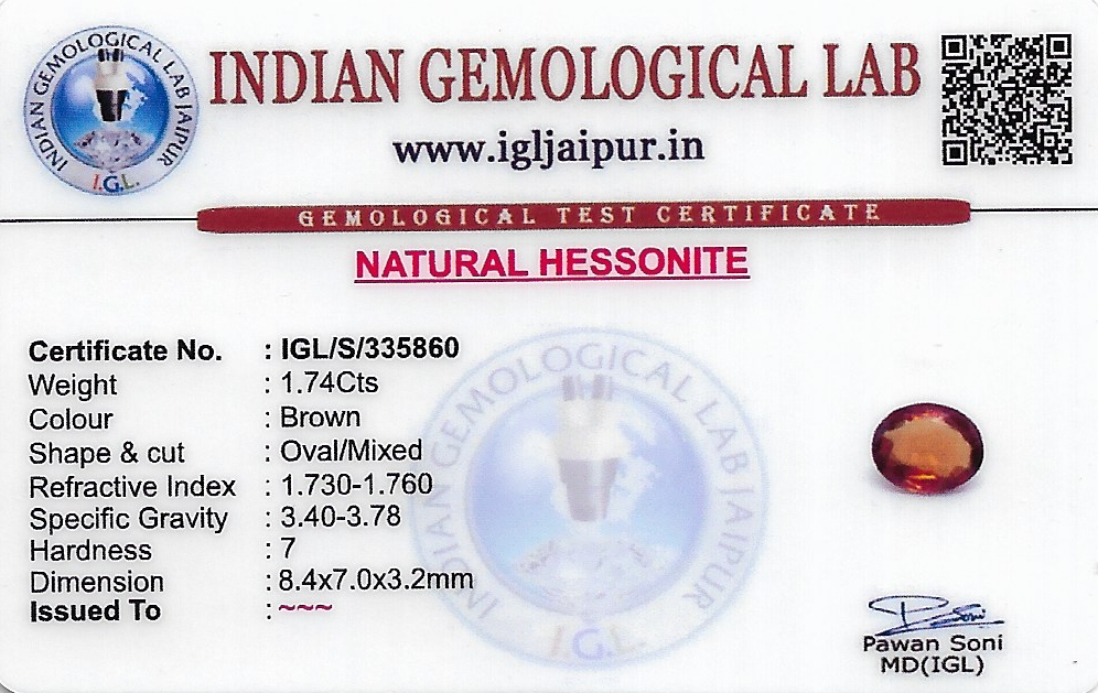 Natural Hessonite (Gomed) weighing 1.74 carats In Oval