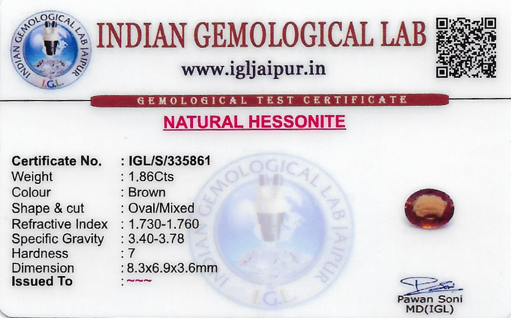 Natural Hessonite (Gomed) weighing 1.86 carats In Oval