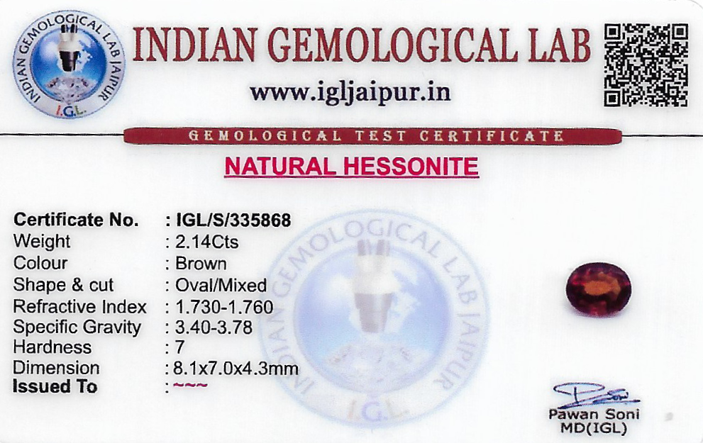 Natural Hessonite (Gomed) weighing 2.14 carats In Oval
