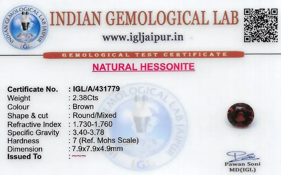 Natural Hessonite (Gomed) weighing 2.38 carats In Round