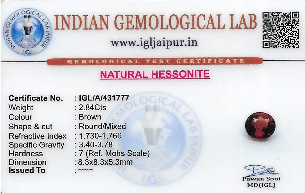 Natural Hessonite (Gomed) weighing 2.84 carats In Round