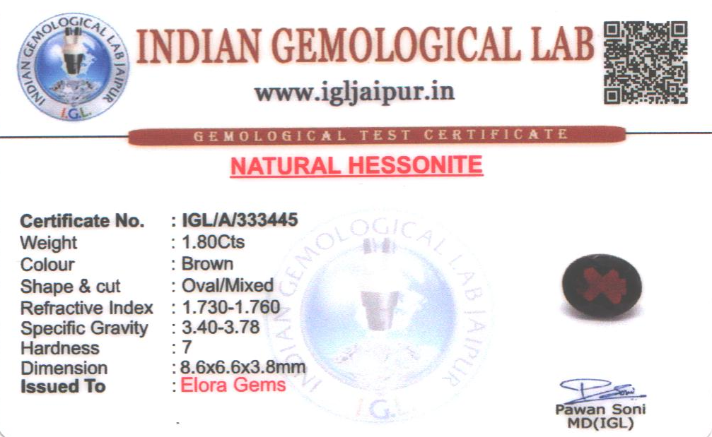 This product "Hessonite (Gomed) 9x7 MM 1.8 carats" is purchased.Please select another product.