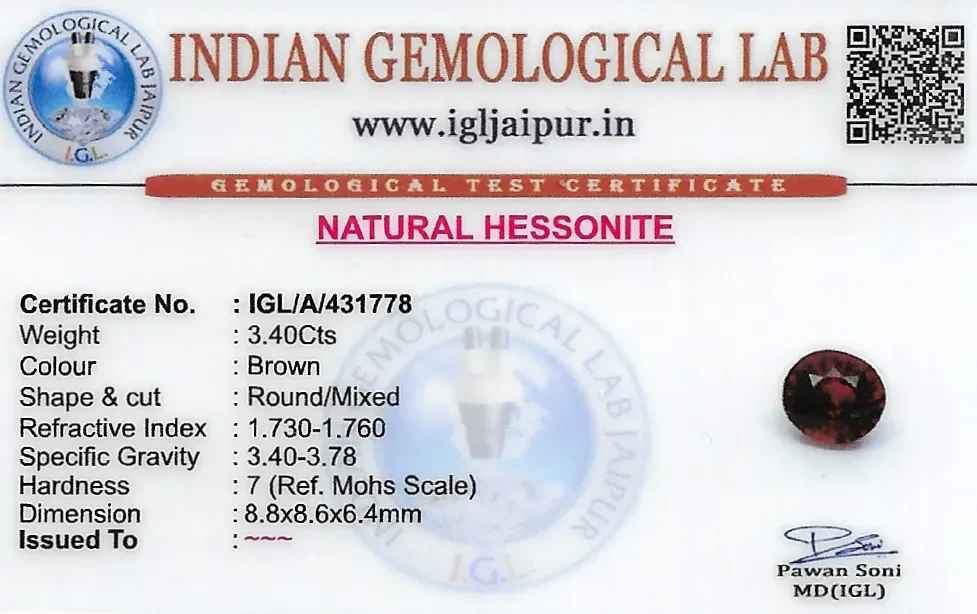 Natural Hessonite (Gomed) weighing 3.4 carats In Round