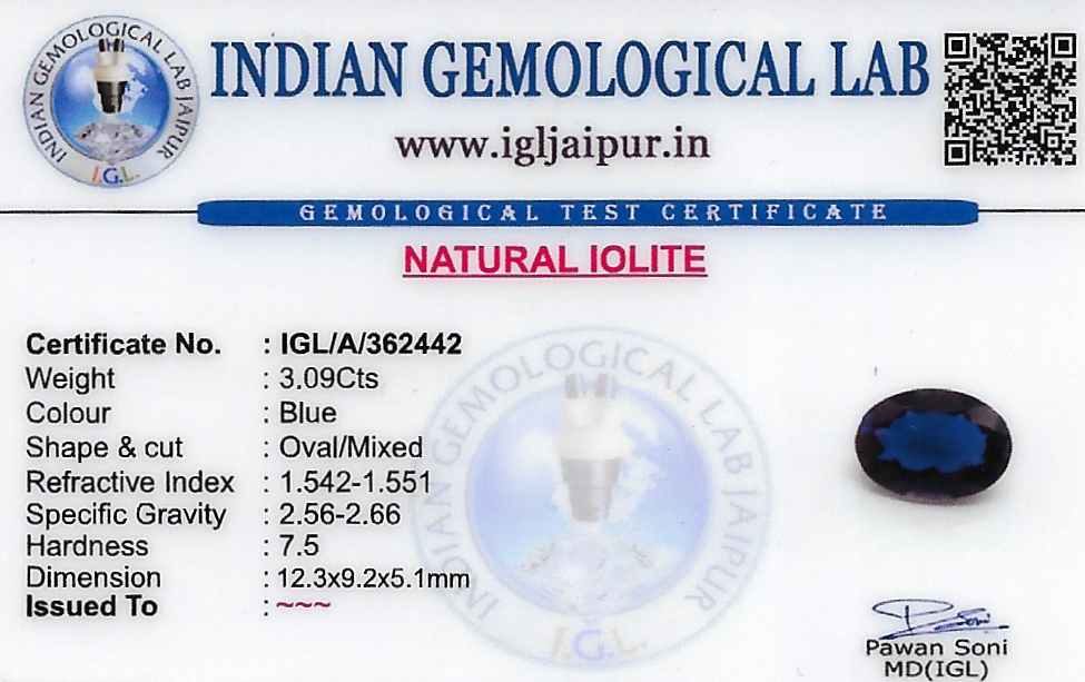 Iolite 12x9 MM 3.09 carats