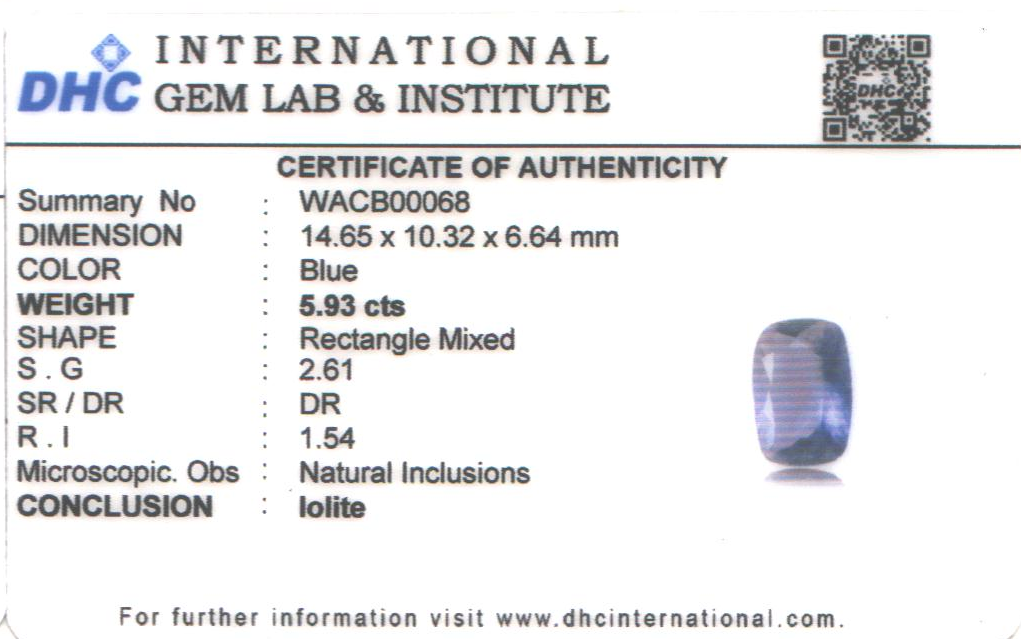 Natural Iolite weighing 5.93 carats In Rectangle