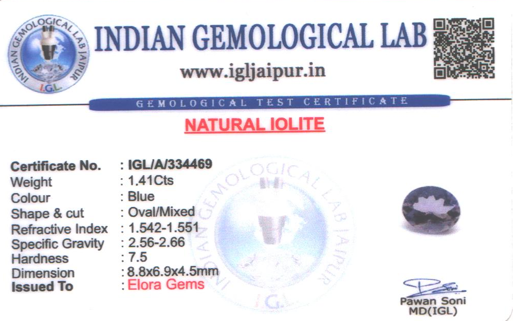 Natural Iolite weighing 1.41 carats In Oval