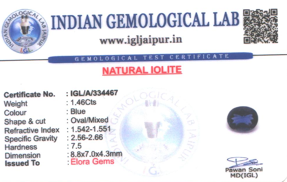 Natural Iolite weighing 1.46 carats In Oval