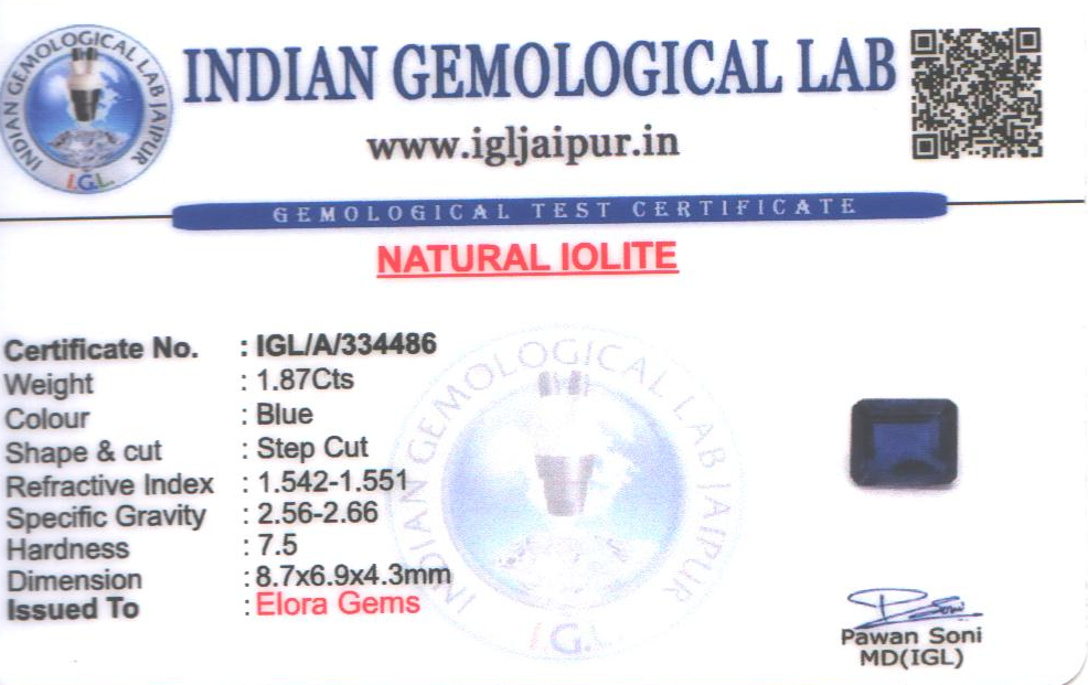 Natural Iolite weighing 1.87 carats