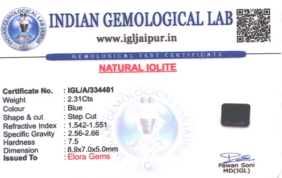 Natural Iolite weighing 2.31 carats