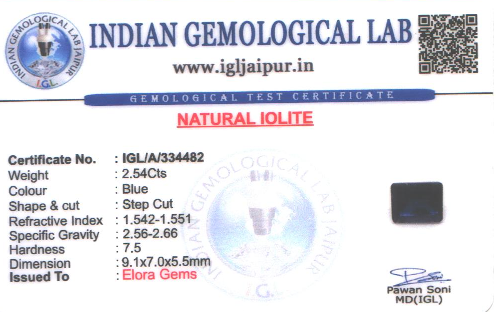 Natural Iolite weighing 2.54 carats