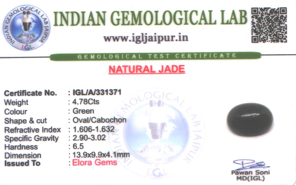 Natural Jade weighing 4.78 carats In Oval
