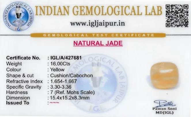 Natural Jade weighing 16 carats In Cushion