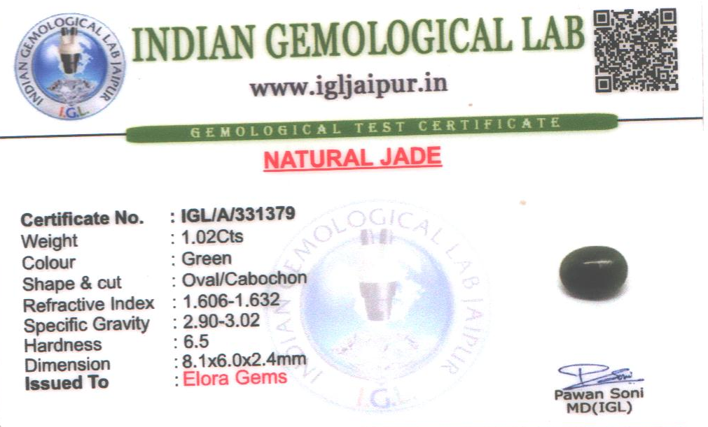 Natural Jade weighing 1.02 carats In Oval