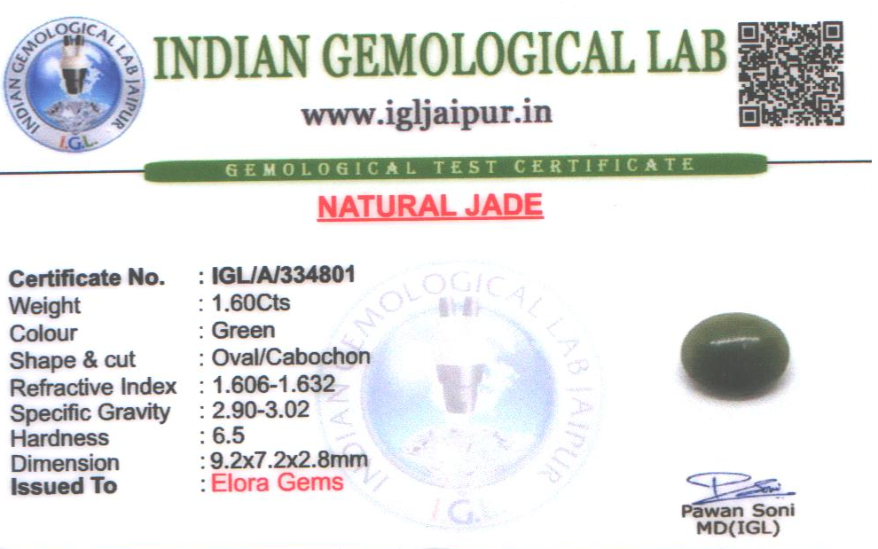Natural Jade weighing 1.6 carats In Oval