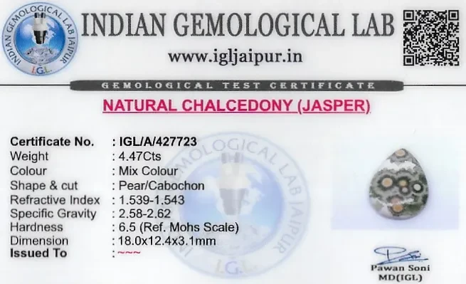 Natural Jasper weighing 4.47 carats In Pear