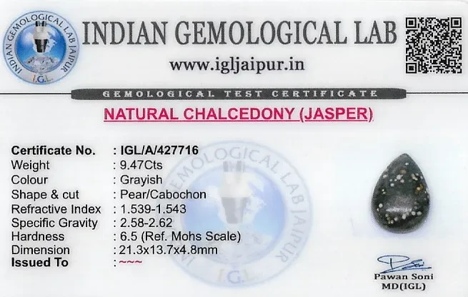 Natural Jasper weighing 9.47 carats In Pear