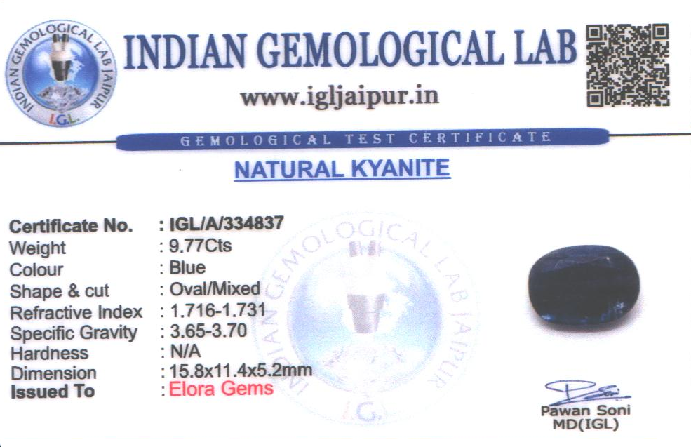 Natural Kyanite weighing 9.77 carats In Oval