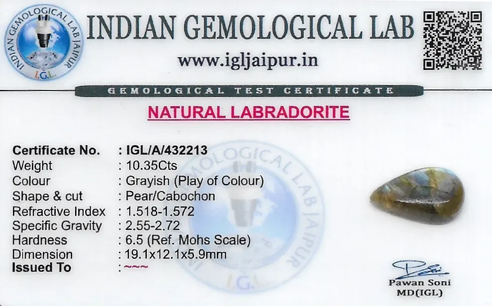 Natural Labradorite weighing 10.35 carats In Pear