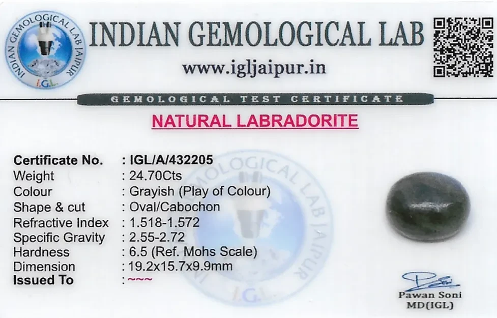 Natural Labradorite weighing 24.7 carats In Oval