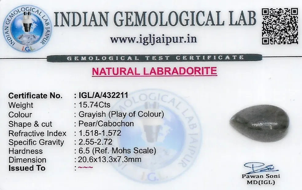 Natural Labradorite weighing 15.74 carats In Pear