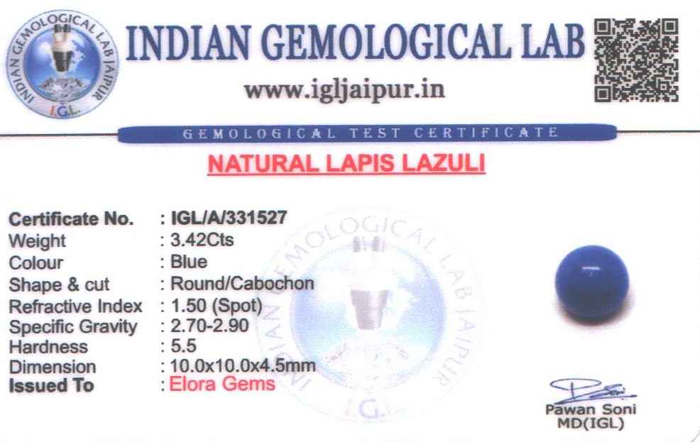 Natural Lapis Lazuli weighing 3.42 carats In Round