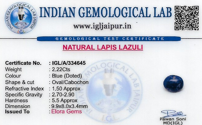 Natural Lapis Lazuli weighing 2.22 carats In Oval