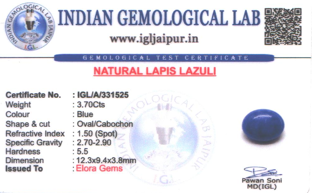 Natural Lapis Lazuli weighing 3.7 carats In Oval