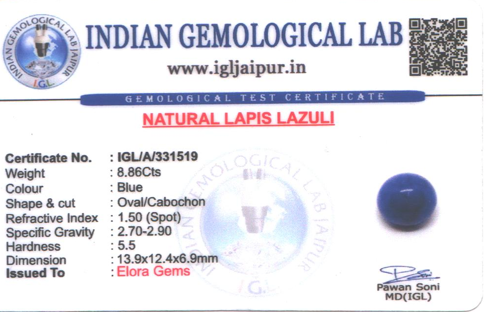 Natural Lapis Lazuli weighing 8.86 carats In Oval